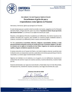 Escuchemos el grito de paz y respondamos como Iglesia en Panamá